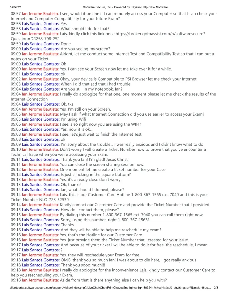 On 2/22/21: I attempted to access my online dashboard and couldn't even login at all. "Invalid credentials" was the error message. I called PSI customer service and got a nice agent who tried her best to help me (including password reset), but I could still not access my account. After 45 minutes she transferred me to IT department, who proceeded to tell me he could not help me because I didn't have a test scheduled and Customer care would have to "release my credentials, and he would have to transfer my call to Customer Care. I questioned why he would be transferring me back to the department that sent me to him, and that turned into a very frustrating repeat of him saying "customer care needs to release my credentials". He did manage to give me a ticket number #846706, before he transferred my call. I was transferred to Charlotte ext. 6141. After I explained what was happening, she said she would have to escalate my ticket to IT department to "reset my credentials". It was going on over an hour on the phone at this point. I expressed my frustration and explained that I felt I was getting tossed around, and nobody is dealing with my issue. She guaranteed to be working with it personally, I would receive an email with her contact info, and in addition would be hearing back within 3-5 days for a resolution. She also transferred me to her supervisor to ease my concerns that the issue was being dealt with correctly this time. Gil(spelling) took the call and he gave me the same story. Gil also suggested that I schedule my online test, and that I would be able to "fix" this issue on the DAY of the test, because they have a department for that. I expressed my unease with that as a suggestion, given that we haven't had a solution by far. I had a lack faith in it being dealt with on Test day, since agent #1 never followed up, agent #2 sent me to IT, agent #3 (IT) said it wasn't an issue they can deal with, agent # 4 said it was an IT issue. Gil then proceeded to tell me that I was sent to the WRONG IT department, and they are now sending my information to the right one, and guaranteed that it would be dealt with. I was on the phone for almost 2 hours at this point and just said OK. I really didn't believe I would hear anything from anyone.