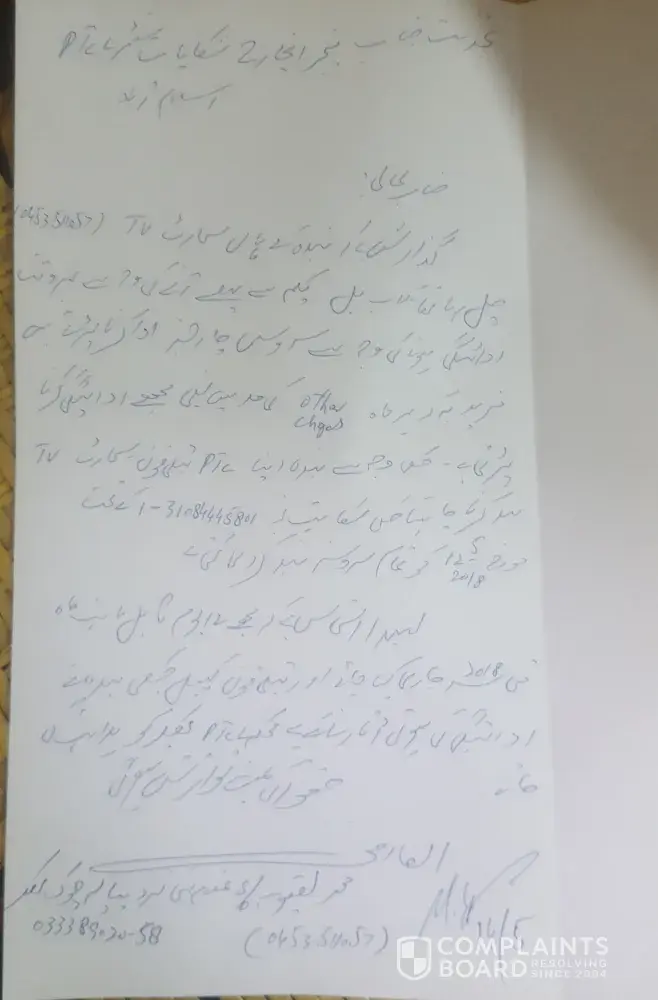 On receipt of 3rd bill, the complaint process was repeated and it was also lodged with PTA.