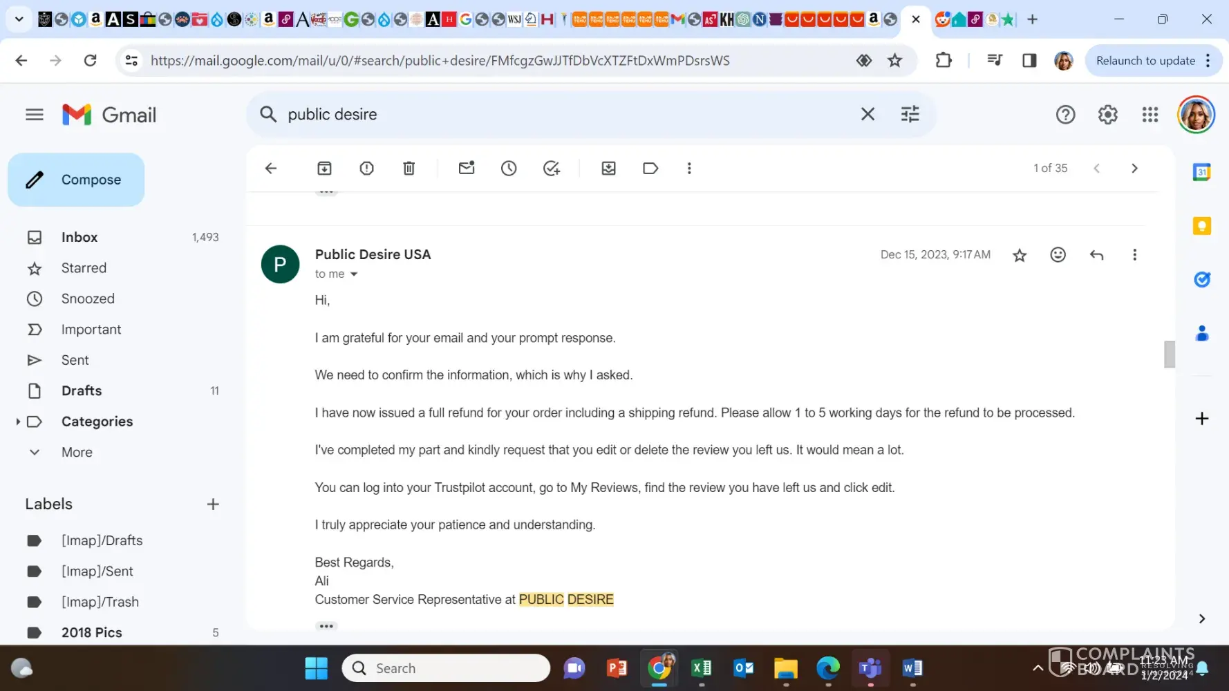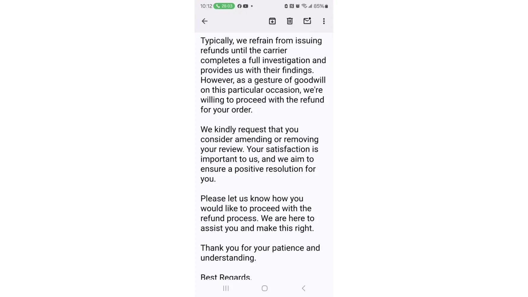 Refusal to refund me/shoes never received/only want to refund me if I change review