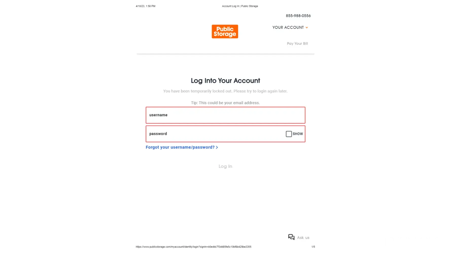In addition, I received a notice on March 23, 2023 stating that if I did not update my information, my payment was going to be rejected. However, the system will not allow me access to my information, nor can I get anyone on the phone. No matter how many times I update my information or how long I wait, it tells me that my account has been temporarily locked.