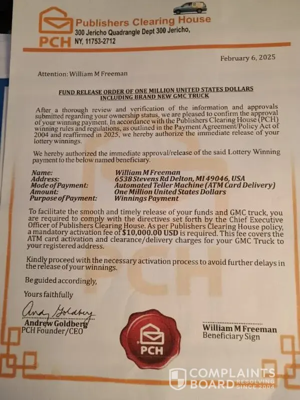 Multiple times pch have push back the prize date on me. Multiple times they have told me that they were ready to make my dreams come true. Received letter starting that this is the last step in the process to find the winner I need to enter a code at www.pch.com/final to confirm my address as it was the address they had on record
