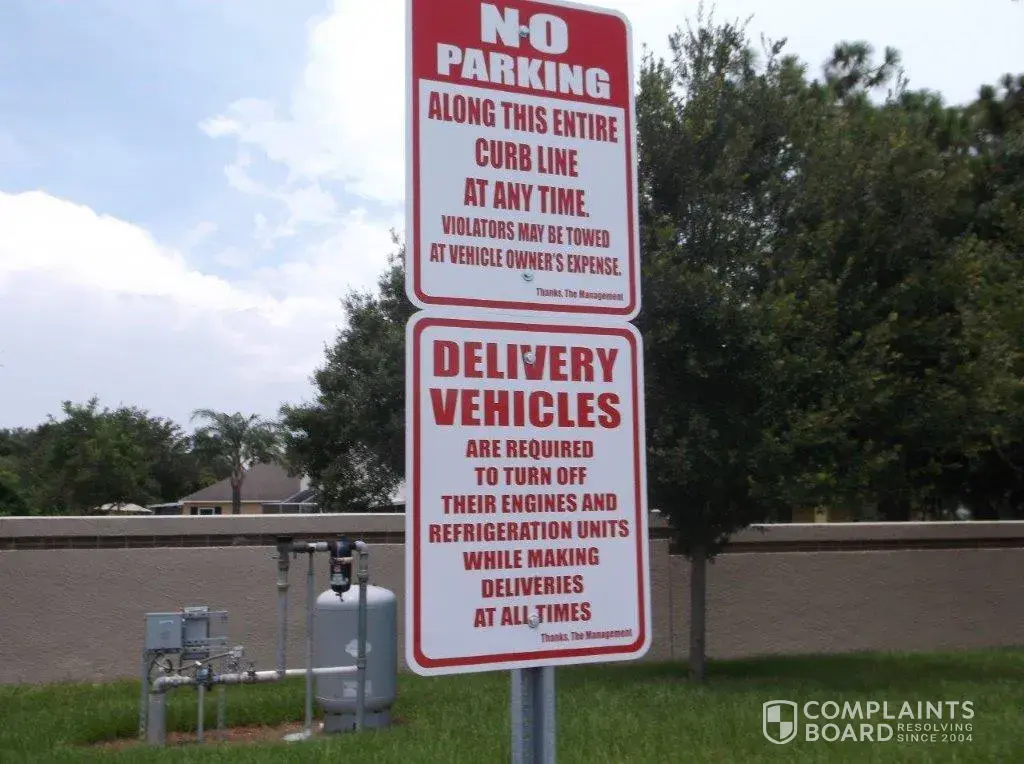 These signs where put up behind your store loading docks a month or so ago, by your property manager Miss Roxanne Hargis [protected]@exceltrust.com. I doubt she has made plans to have someone monitoring these signs. Because they have not been, unless the drivers do not read English, or they were just put there as a show as they do not curtail the noise.