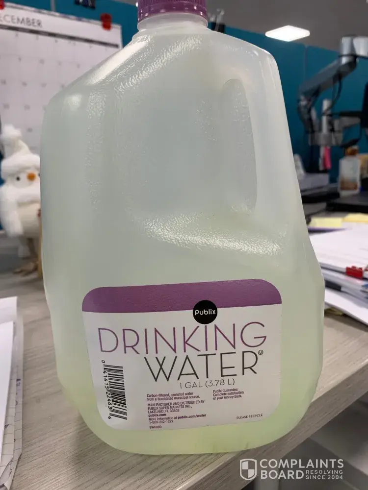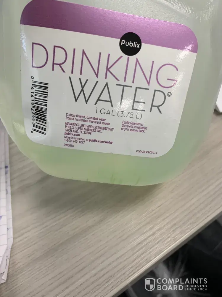 I purchased a gallon of Publix drinking water and it was normal clear looking, I went to drink it today and it looks like algae growing in it and it is green! It is NEW and Sealed! The expiration date is March 30, 2020. I am very concerned, because I drink a lot of Publix water, and don't know what poison I have consumed!
