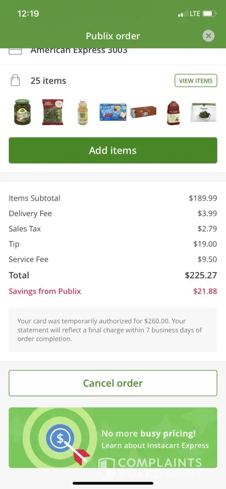 Upon trying to place another delivery order for $250. But this time I noticed a service fee. Besides Tip & delivery charge and you are already told prices are higher because of convenience. So I look @service fee and it says optional so I take it off, well it won't let my order go through, says error. So finally I leave it on...ding ding ding...my order goes through.