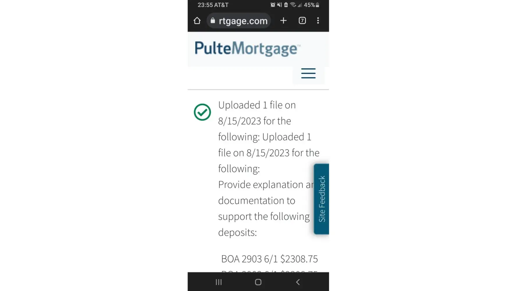 Have tried to upload (6) documents that show the issue discussed above but I only have PDF files and those will not upload. If you call or email me I can provide these documents. Thanks in advance for your consideration.