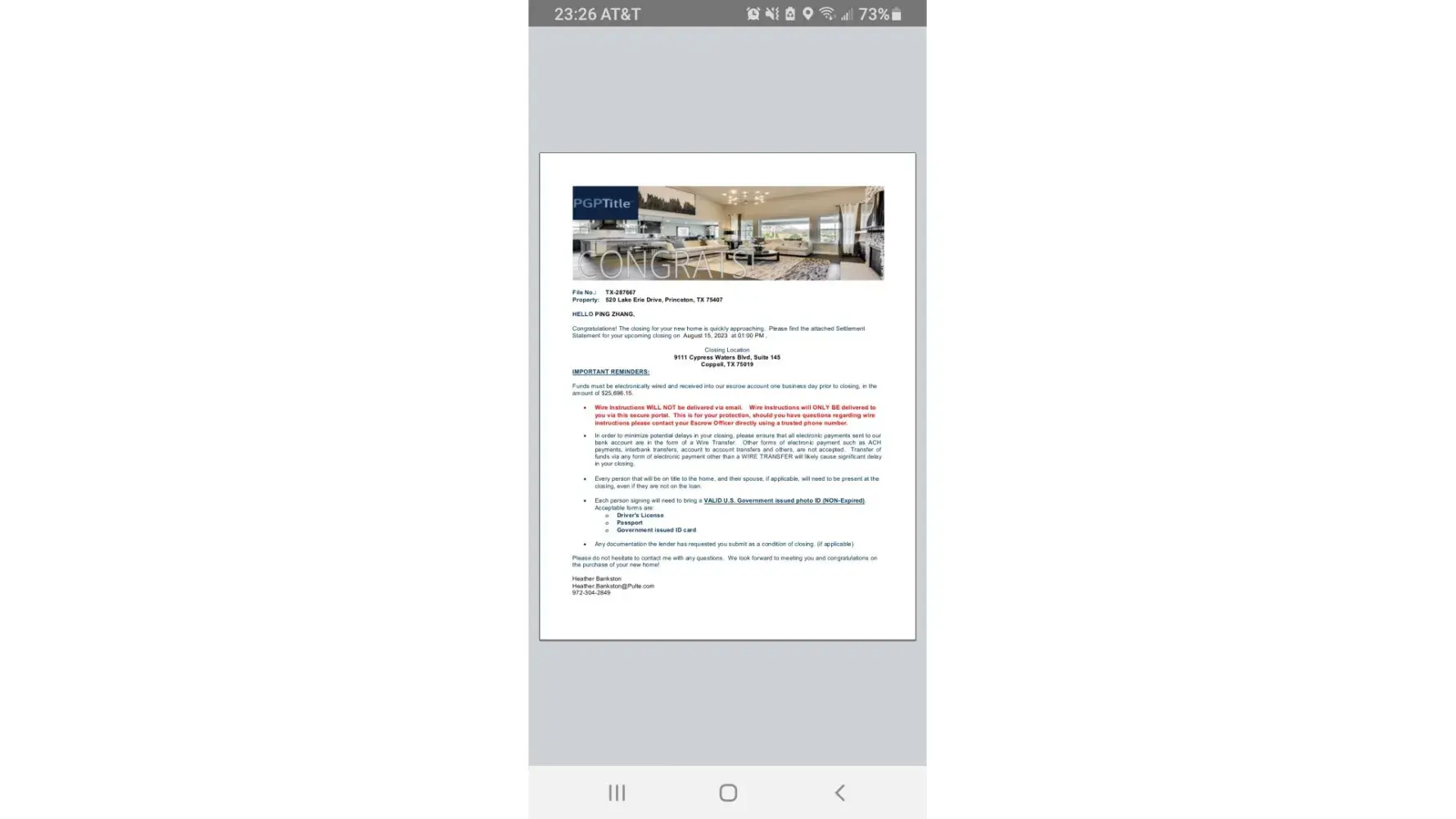 Pulte mortgage request me updated condition document on the closing date. Because their loan officer people change positions need ask same document. They can't verified my