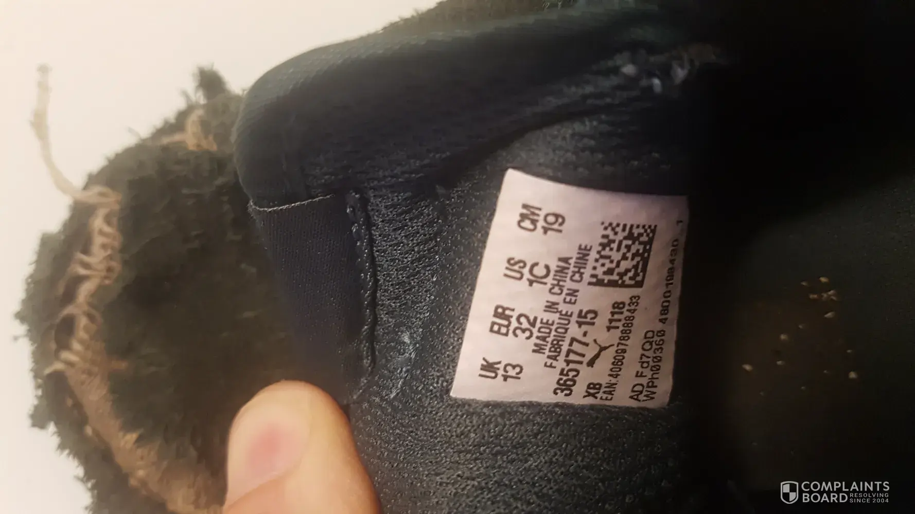 We bought two times basket shoes for our kid. The first one was broken after 2 months. As our boy liked to get the same shoes, we bought a second one just before our holidays. After 5 days, it was completely destroyed while brand new (look the sole is not used at all). This is not acceptable to get such pour quality product for a brand like Puma. By this claim, we ask for the refund of one pair for the full price of 49 eur.