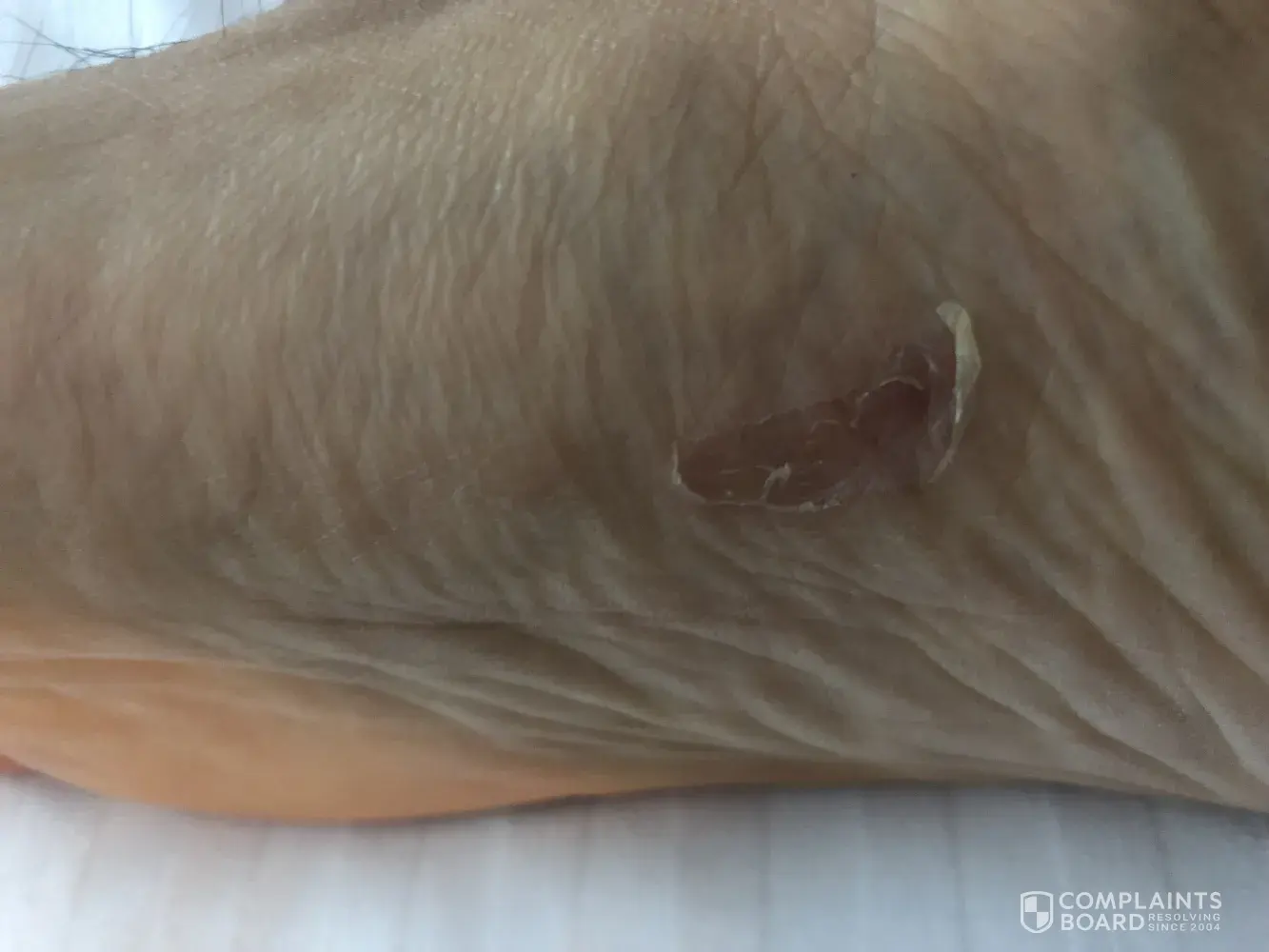 After wearing them for a few days, I felt a sharp pain on the side of my foot, near the heel. I noticed that there seemed to be a solid piece of something inside the shoe. I cut a hole into the lining, and pulled out a hard, rock-like piece of plastic (?), see photos; It caused a blister on the back of my foot. I'm very surprised that new shoes could have this defect in them. Can you please let me know what I should do?