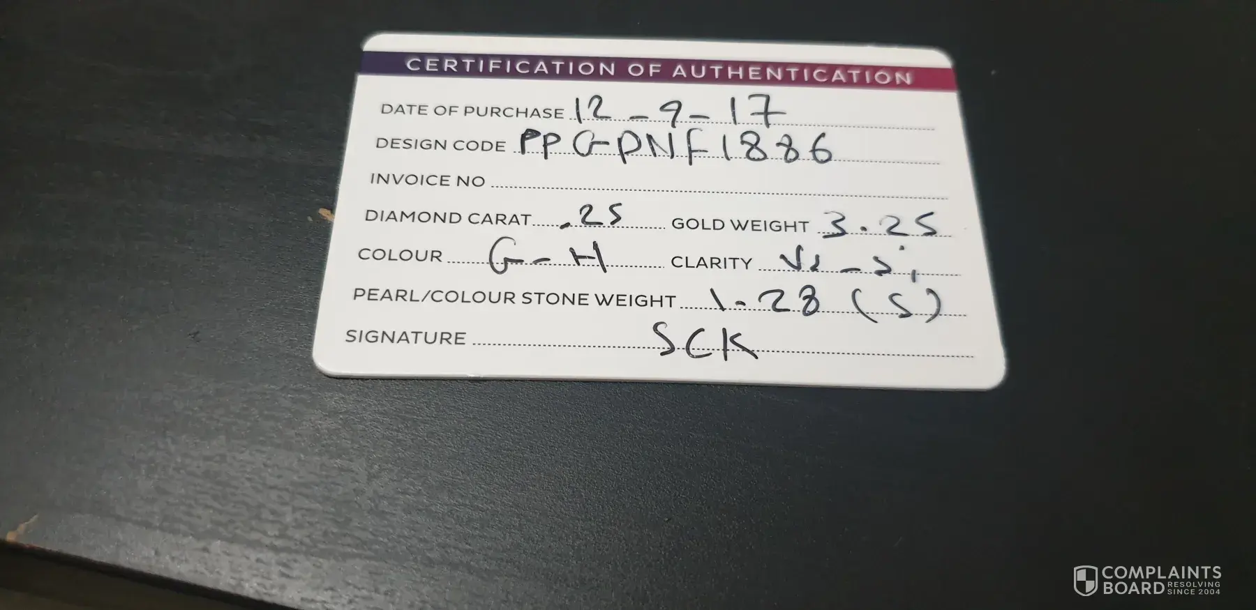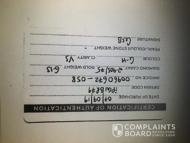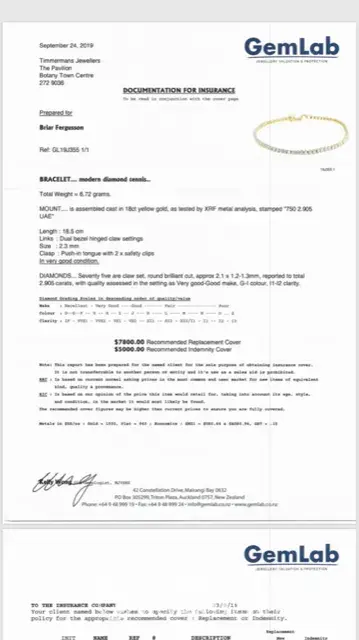 I have attached all the documentation including the bracelets certificate card which was supplied to me at the store and a copy of what I have just received regarding the bracelets actual true clarity etc.
