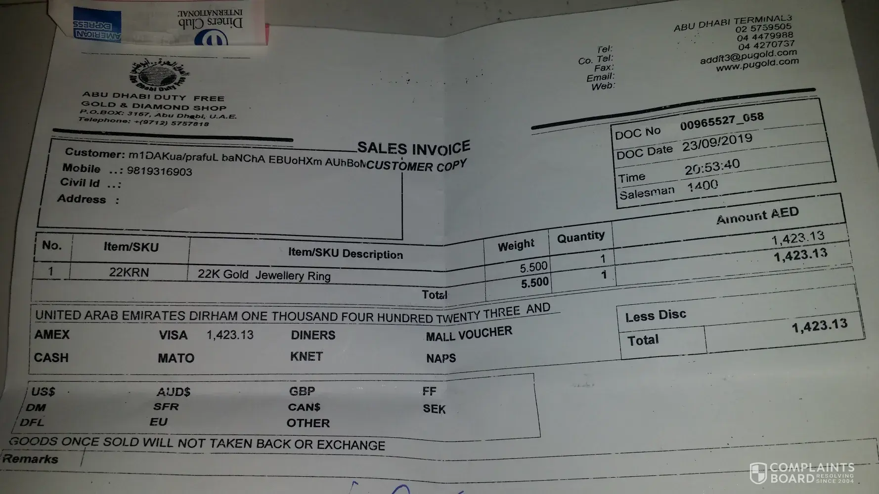 This mail is regarding a complaint for lying about the weight of the gold, charging incorrectly at Pure Gold Duty Free abudhabi Terminal 3.