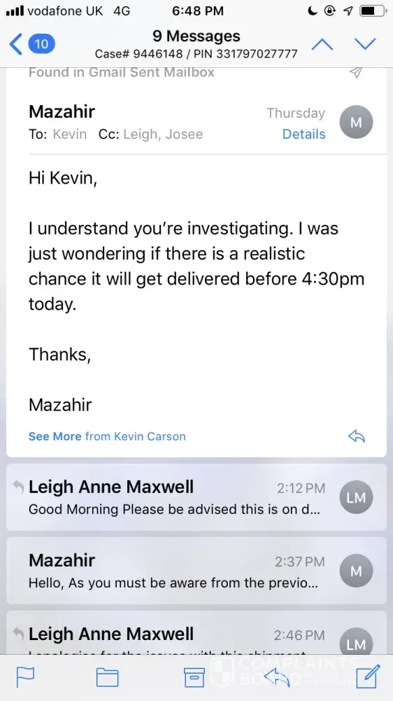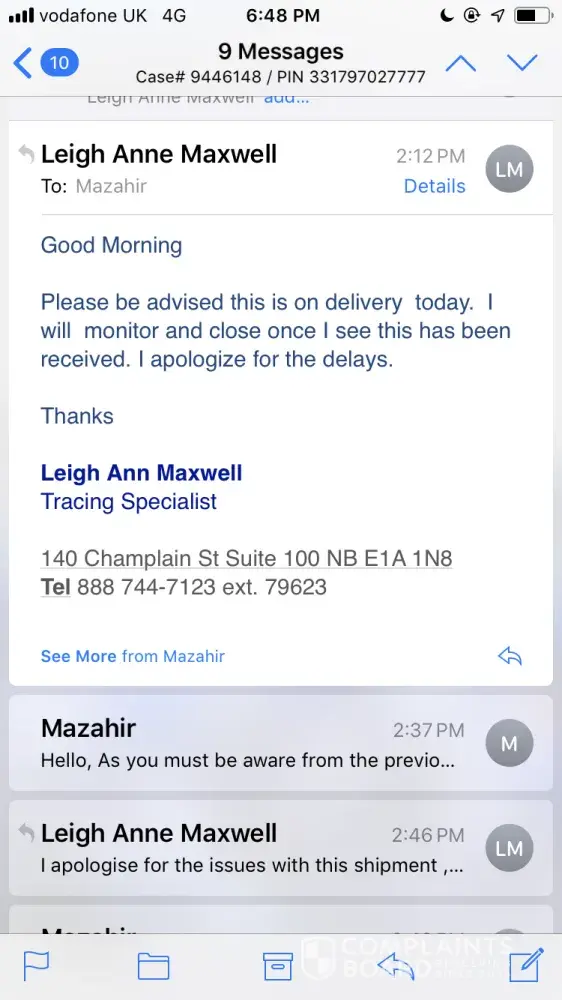 I realize no one at Purolator wants to read this but I would like to know the progress of the complaint the obnoxious but truthful(I hope) said she filed on my behalf.