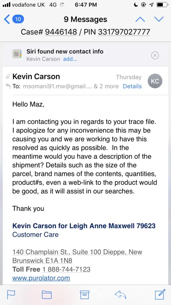 If this is how Purolator works this is great to hear