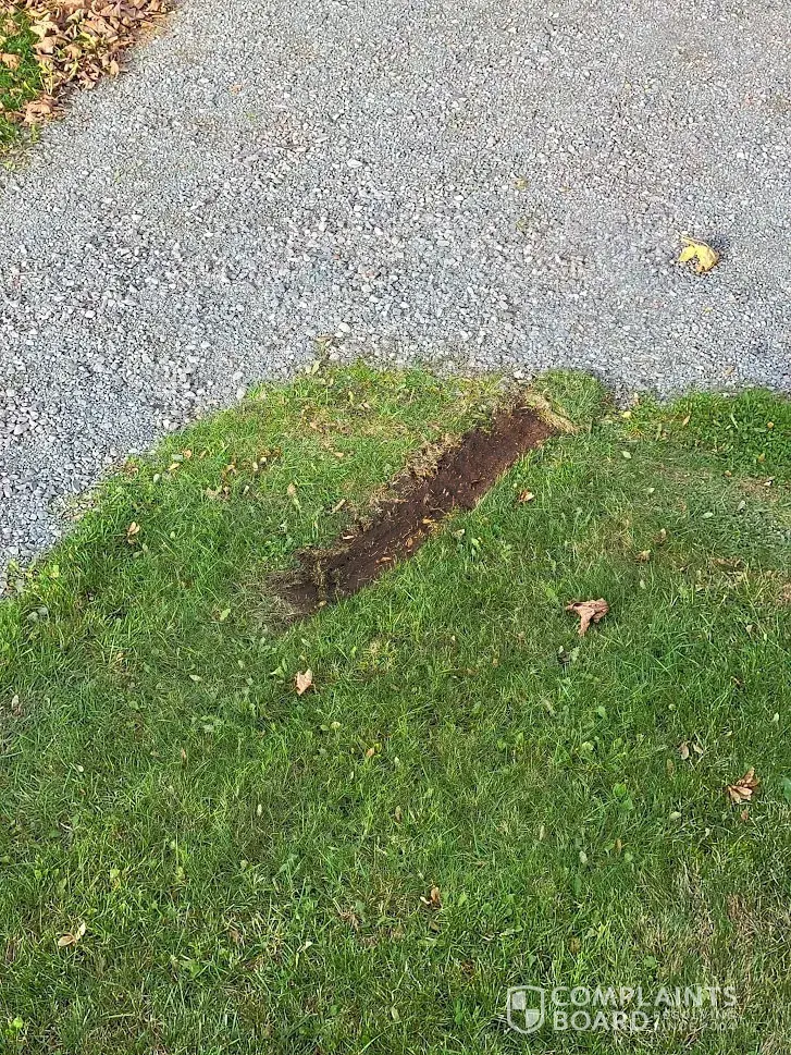 On November 3, 2022 at approximately 1pm local time, a Purolator driver backed into our private driveway to deliver an Amazon package, and then drove up onto our grass. By spinning his tires, he tore up two parts of our lawn. Images of the damage are attached to this message.