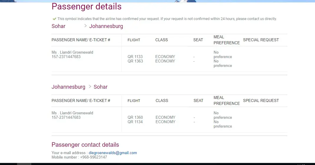 I contacted Qatar Air customer service and Mr.Ivan Fernandes Customer Care Officer advised me