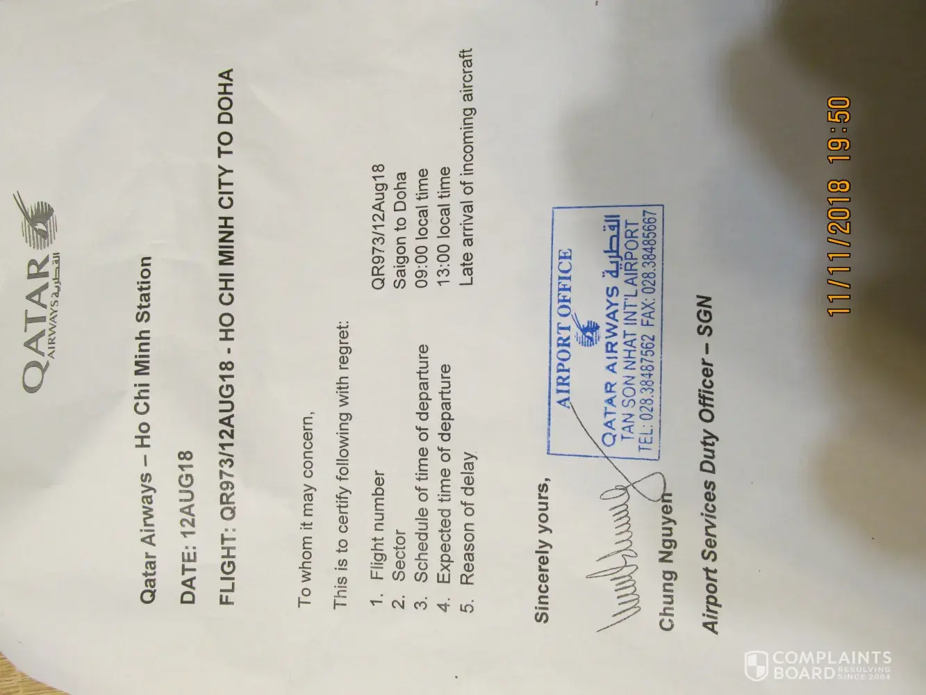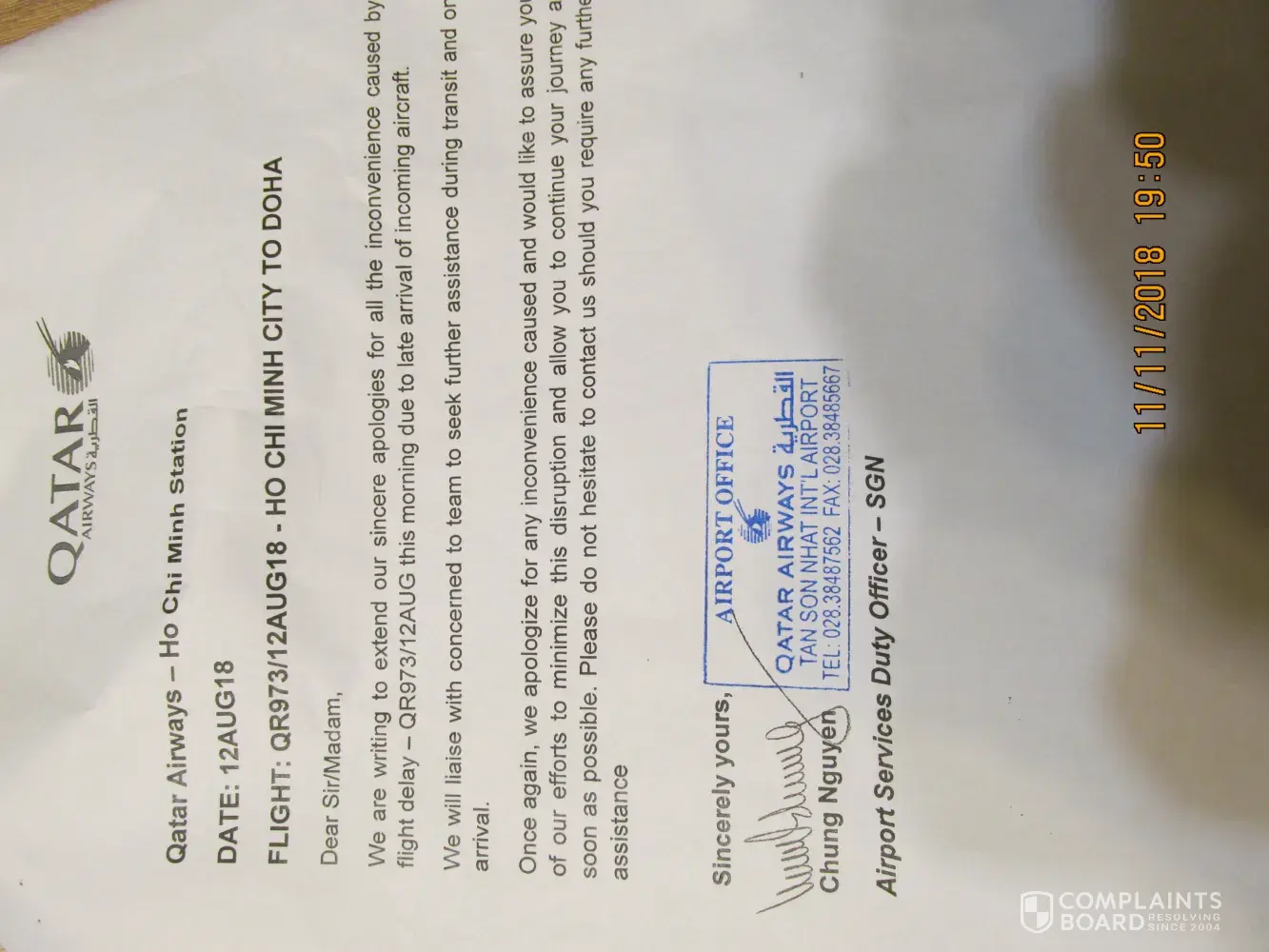 I want to do a complaint about my last trip ( Bangkok trip ) through Doha, while is my last destination was to Saigon ( Vietnam )...
