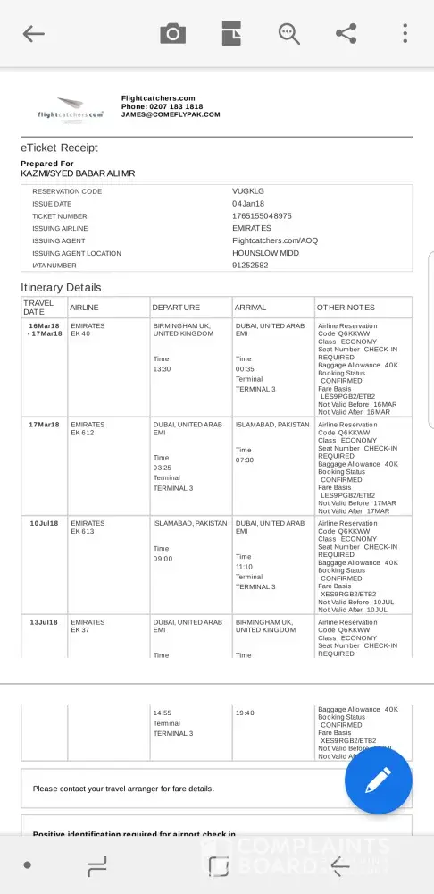 Compensation in full is what we require back for ALL 5 passengers and we are lodging a complaint with EMAILflights.com who we booked through, They advised us to complain to you directly.