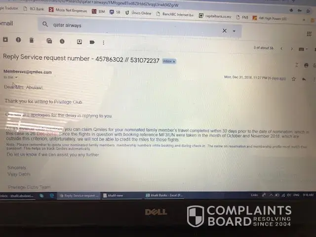 And actually called twice to Qatar head office from Mozambique, the last time 3 days ago and had to wait on line for 40 minutes in line just for them to ask me to call again in 2 days and today i got the email saying that we wont have our miles.
