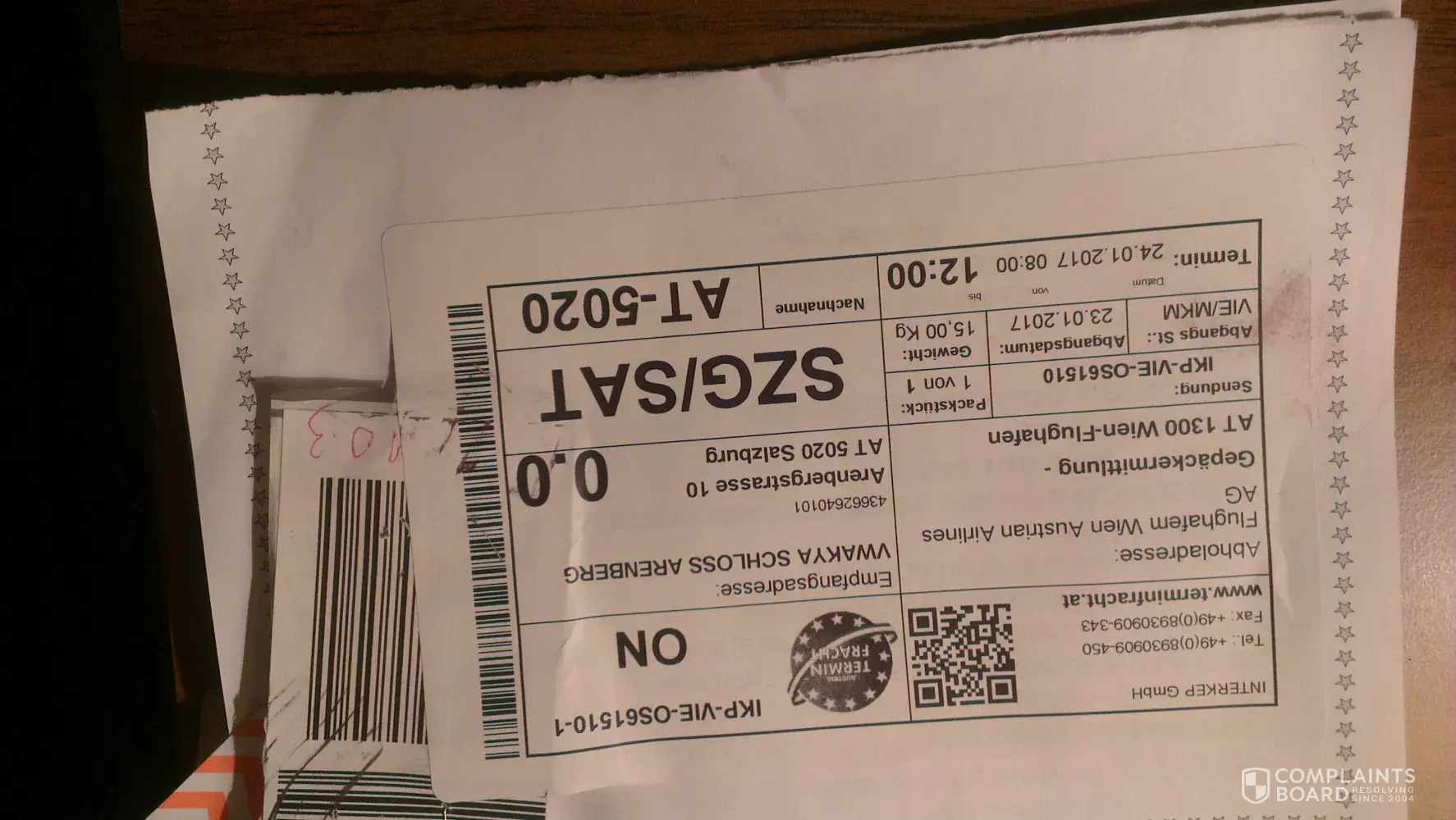 I reported the case to Vienna airport branch of Austrian airline which took me from Budapest (File reference: VIEOS61510) on 22/01/2017 and continue to Salzburg by train (OBB Company).