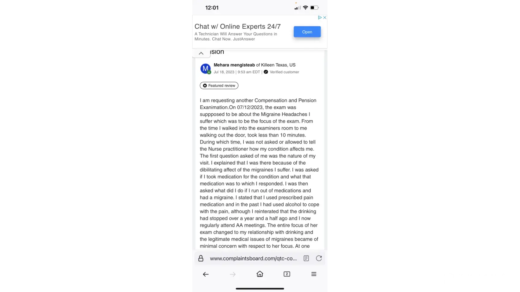 I am requesting another Compensation and Pension Exanimation.On 07/12/2023, the exam was suppposed to be about the Migraine Headaches I suffer which was to be the focus of the exam. From the time I walked into the examiners room to me walking out the door, took less than 10 minutes. During which time, I was not asked or allowed to tell the Nurse practitioner how my condition affects me. The first question asked of me was the nature of my visit. I explained that I was there because of the dibilitating affect of the migraines I suffer. I was asked if I took medication for the condition and what that medication was to which I responded. I was then asked what did I do if I run out of medications and had a migraine. I stated that I used prescribed pain medication and in the past I had used alcohol to cope with the pain, although I reinterated that the drinking had stopped over a year and a half ago and I now regularly attend AA meetings. The entire focus of her exam changed to my relationship with drinking and the legitimate medical issues of migraines became of minimal concern with respect to her focus. At one point I felt as if I was under tremendous scrutiny about drinking to the point of her checking my eye movement consistant with a field sobriety test. of the exam turned direction and became the focus of her queries and we never again visited my migraines again, her focus was entirely on drinking, which was very frustrating as that has not been a factor in my life for over a year and a half it however became her present focus for the exam. In closing i was prohibited from presenting my statement nor my witnesses Statement in support of claim. I am requesting another Compensation an Pension Examination so that the VA will be provided a more accurate and complete report of my conditions. Nurse practicioners and physicians assistants should NOT be presumed competent to render medical opinions in a Compensation and Pension Exam.