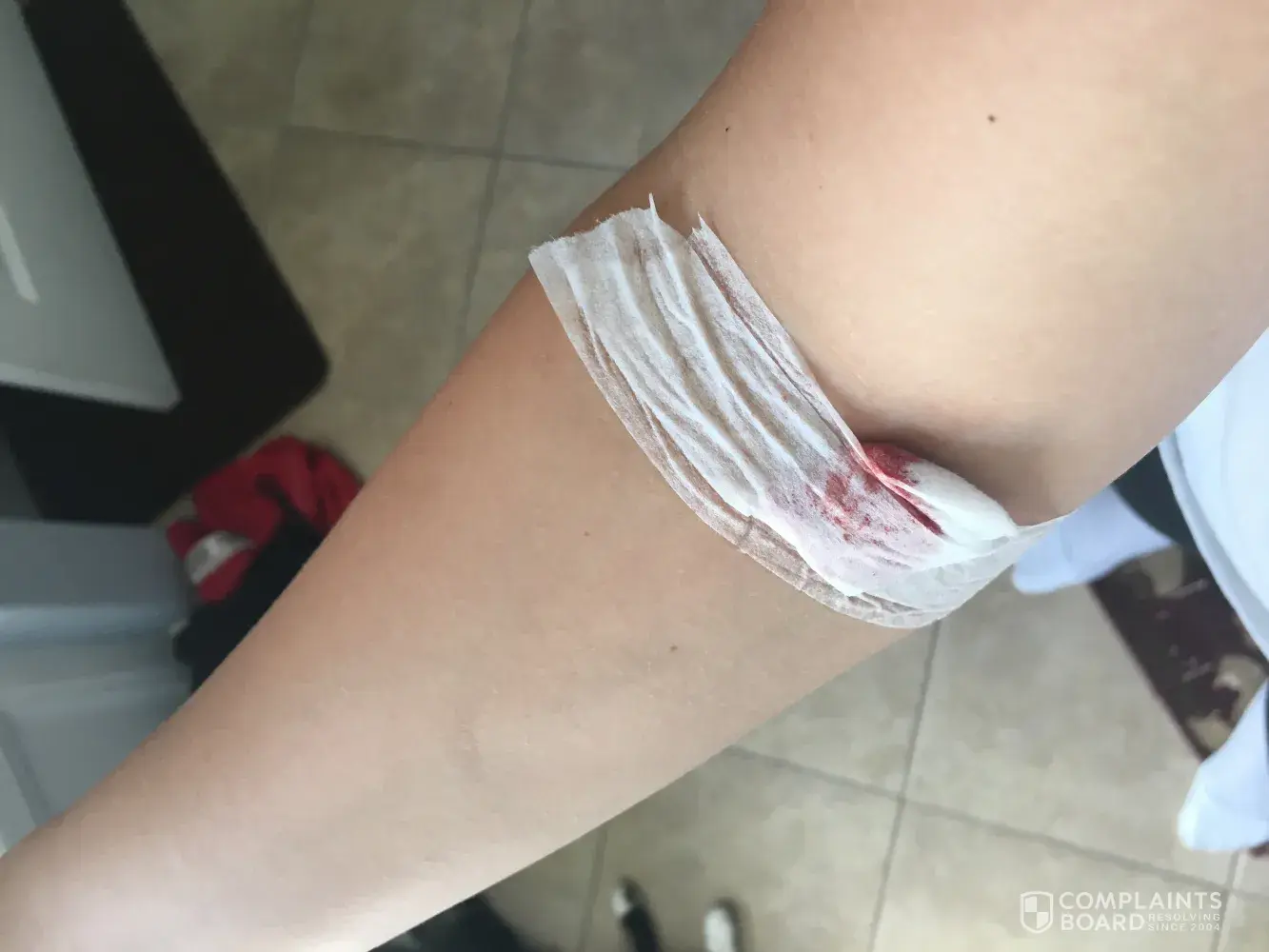 Plebotomist drew blood from vein on left arm it bled profusely after then overnight turned into a big discolored streak, I saw my physician today and was sent for an ultrasound to check if there was a possibility of a clot. This employee is obviously not qualified. the location is 4545 Spotsylvania Parkway fredericksburg, Virginia 22408.. I have been using Quest for over 25 years at various locations, never had this problem before.