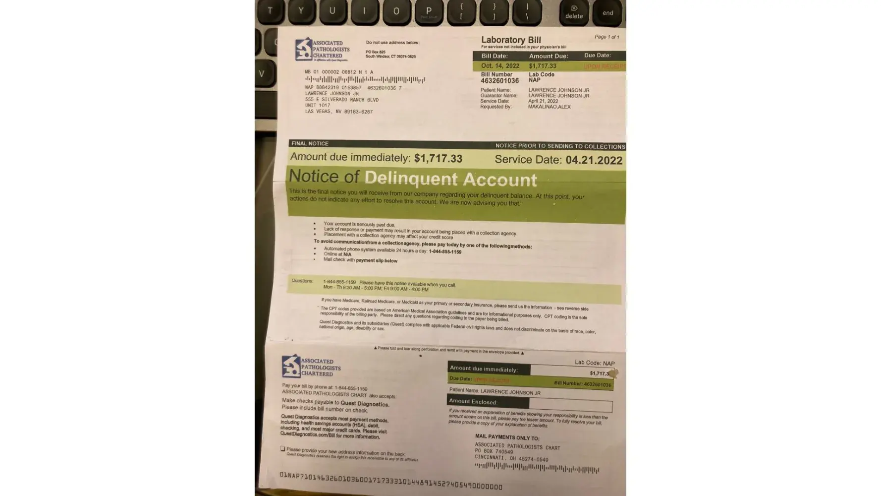 Desired outcome: Quest and its affiliate, Associated Pathologists, need to correct this bill immediately. My bill should be placed in paid-in-full status.