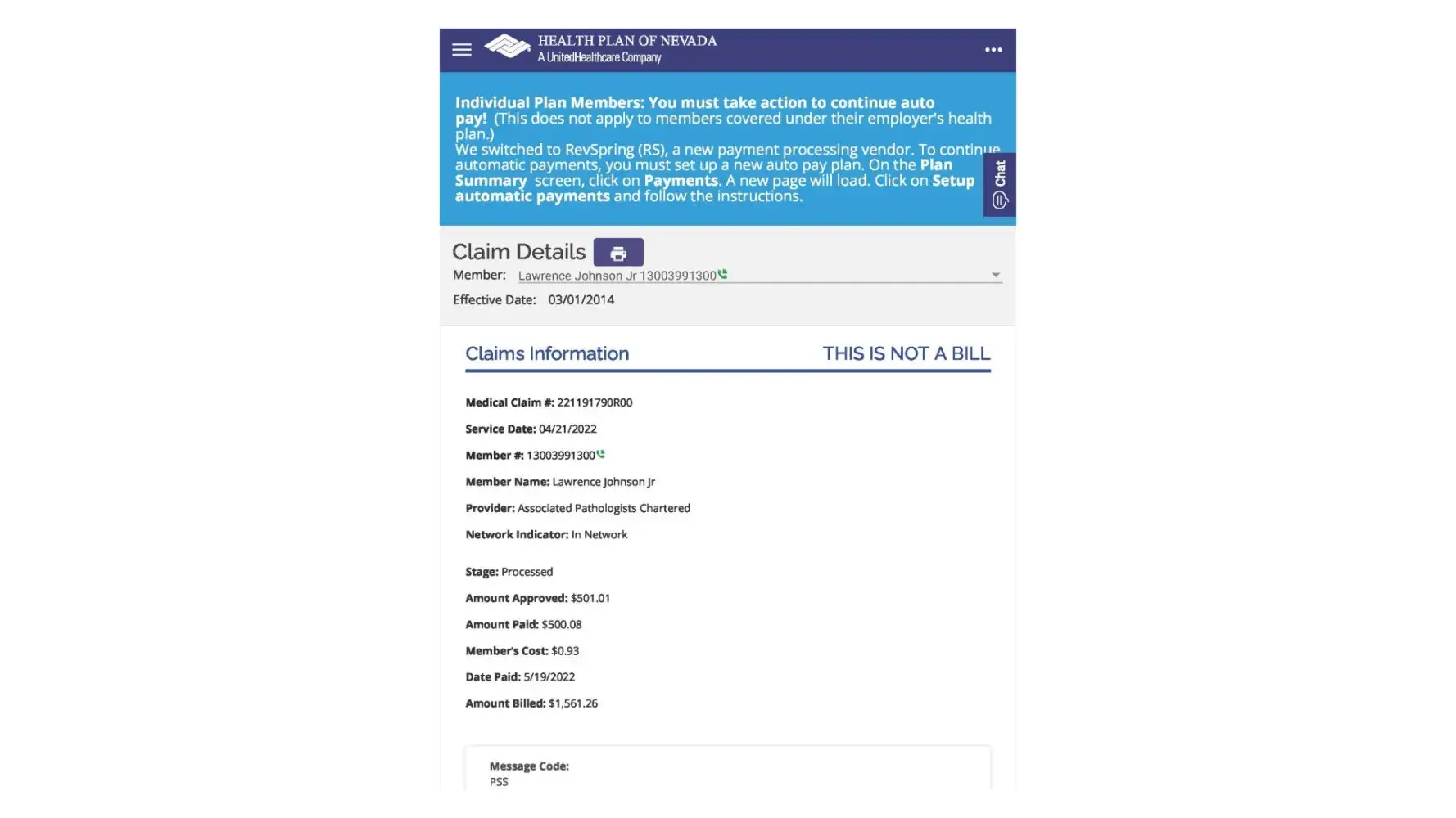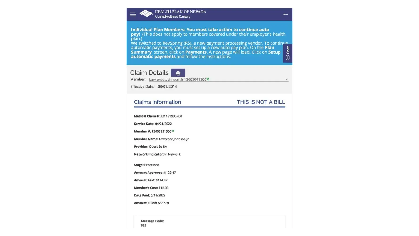 The next bill for $47.36 came 7 months later (9/22/2022, Invoice [protected]). I contacted MyDocBill Team [protected]@mydocbill.com. They assigned the case to a specialist with tracking ID [protected], ref:_00D306cpw._5001E1XzZX4:ref. On 10/07/2022, they said, “In reviewing the payment information, it was sent via VP(virtual payment) and Quest does not accept virtual payments and would have sent a request back to your HSA company, advising to resend via another payment method.â€
