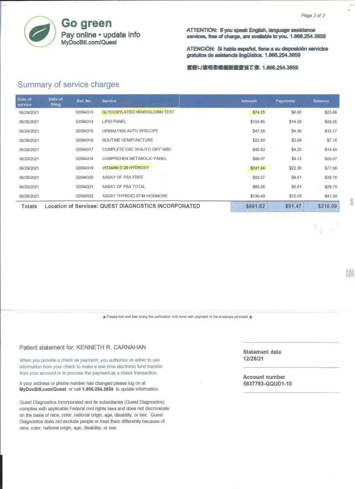 My Primary indicated that they had contacted Quest to discuss but there seemed to be no record of this call.