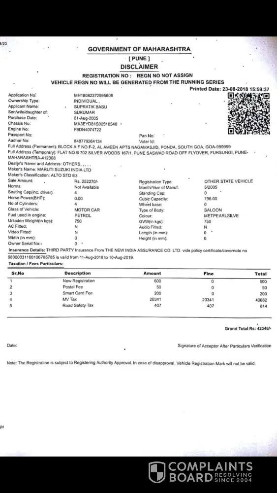 Till this stage it was fine. And this is trace able in sarathi/vahan .
