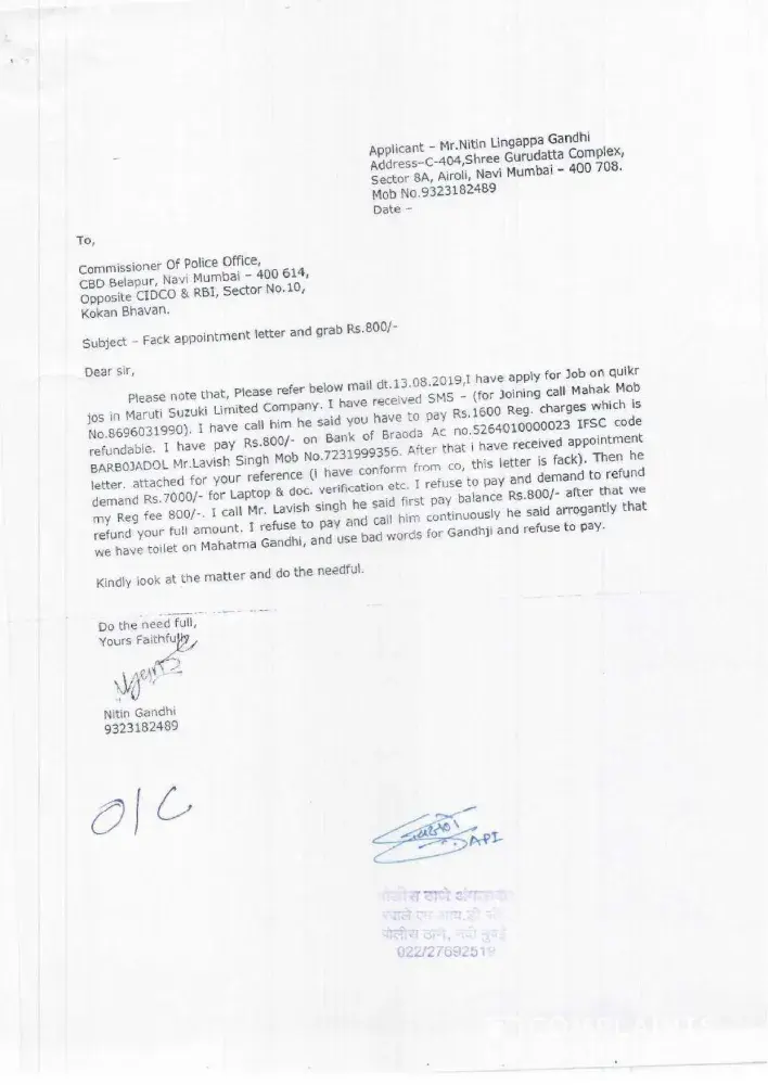 During the second round of the application process, I received a call from a man named Mahesh Pathak, who claimed to be an HR representative from HDFC bank. He informed me that my interview had gone well and that I needed to pay Rs. 4500 for document verification. I requested that I pay the amount after my joining, but he refused and threatened to cancel my application if I did not pay immediately.