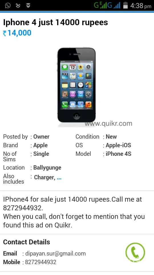 http://kolkata.quikr.com/Iphone-4-just-14000-rupees-W0QQAdIdZ190247946