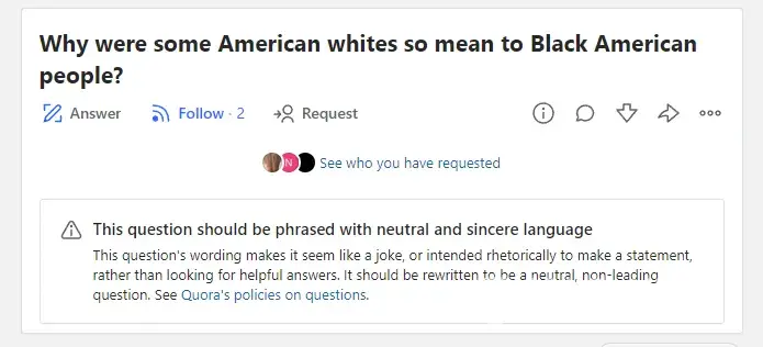 Quora is another biased feminist social media that claims to be fair in its moderation.