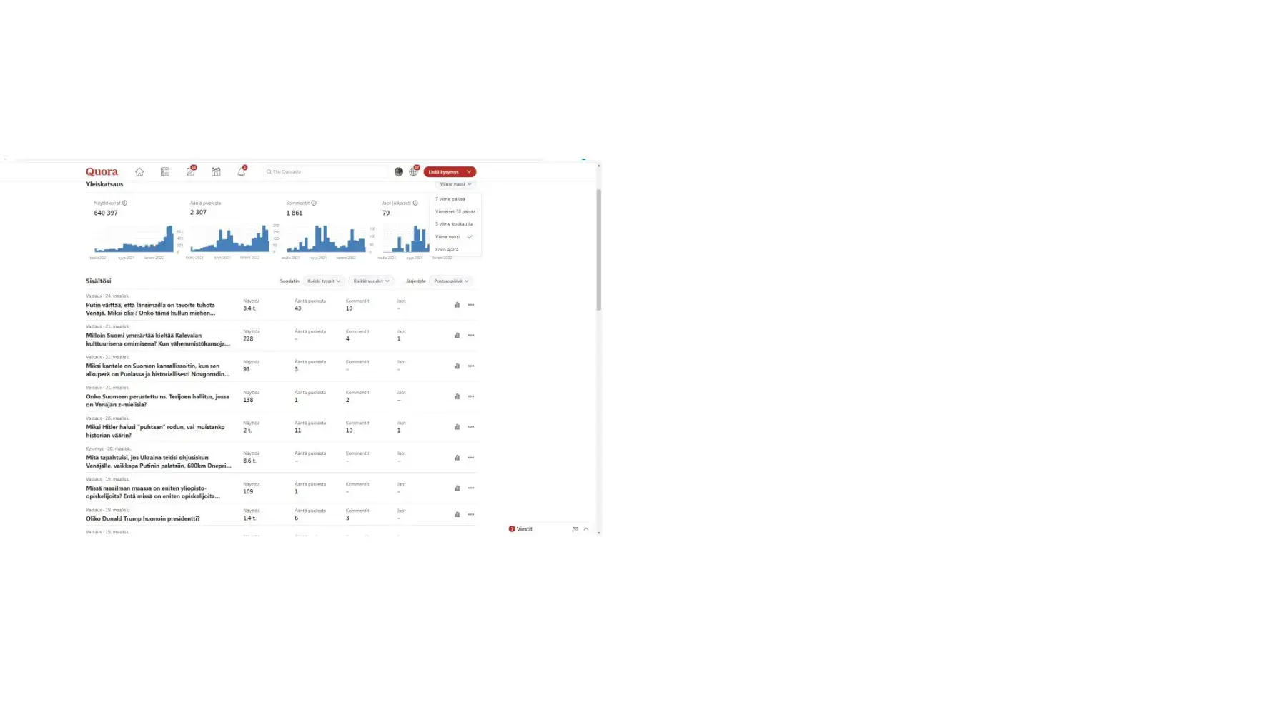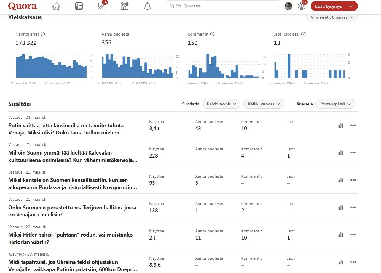 I ended up being quite active in the Finnish Quora during the last year, and according to your records quite a popular contributor.