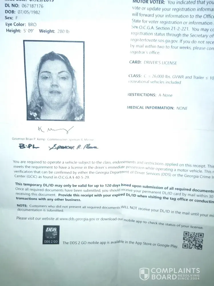 Ok, so I visit this particular store, everyday sometimes 2 a day, so I go in the store to purchase cigs, I got I'd by Calle whom is a manger, I presented her with the papercopy, which I had gotten at dmv 2days prior, currently awaiting hardcopy in mail, she tells me she can't accept, I informed here it was from dmv, she began to argue with me, that she had...