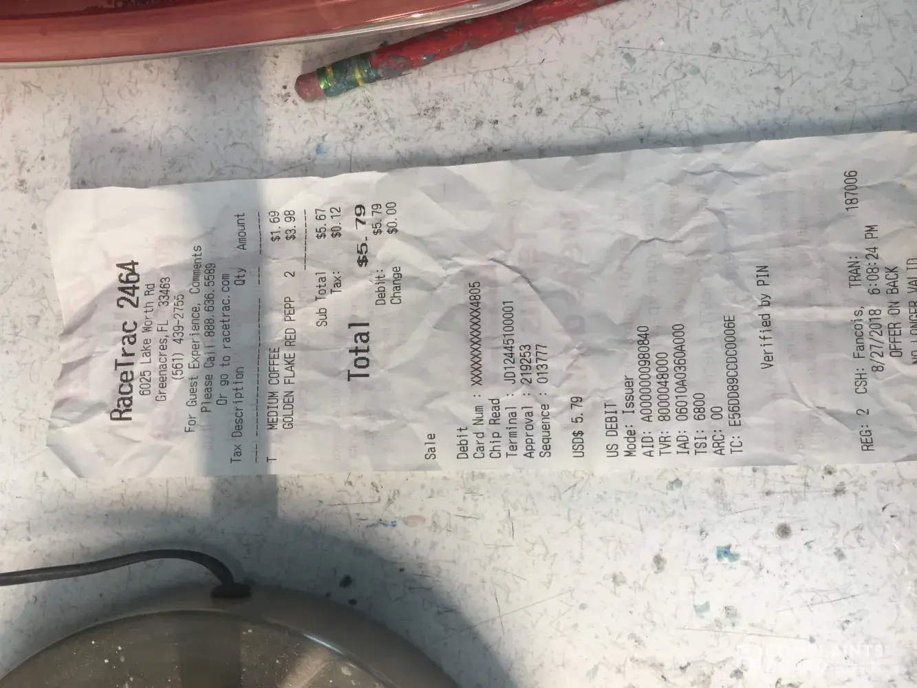 RaceTrac no paper at the pump for a receipt