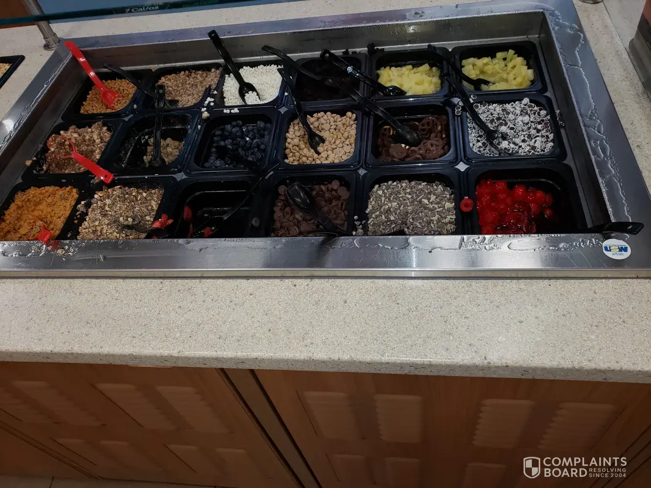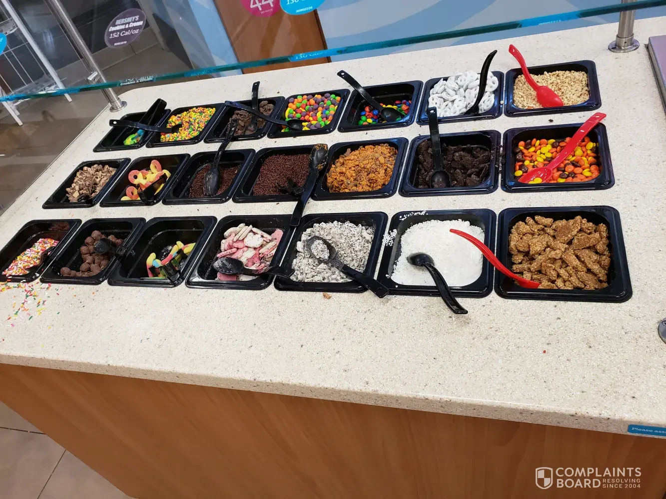 I was attempting to purchase ice cream from your soft serve bar, upon arrival I saw all the condiments and delicious toppings out, spoons ready, other customers arrived at the same time I did, we all noticed that every ice cream dispenser had a sign that said closed.