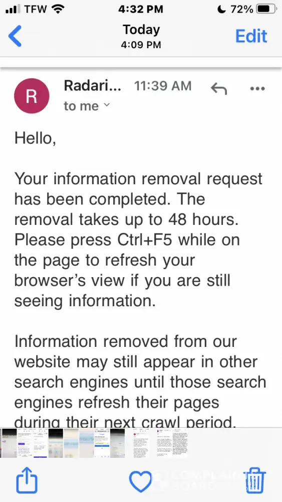 This company is a scam! They refuse to remove your private information, which can be disastrous and dangerous to stalkers with evil intent, much like radar is themself. The guy who owns this company is a con and get his jollies off by making innocent people suffer. If you complain or should you have the audacity to remove your information, they will keep adding more and more info, often which is not true! Evil to the core!