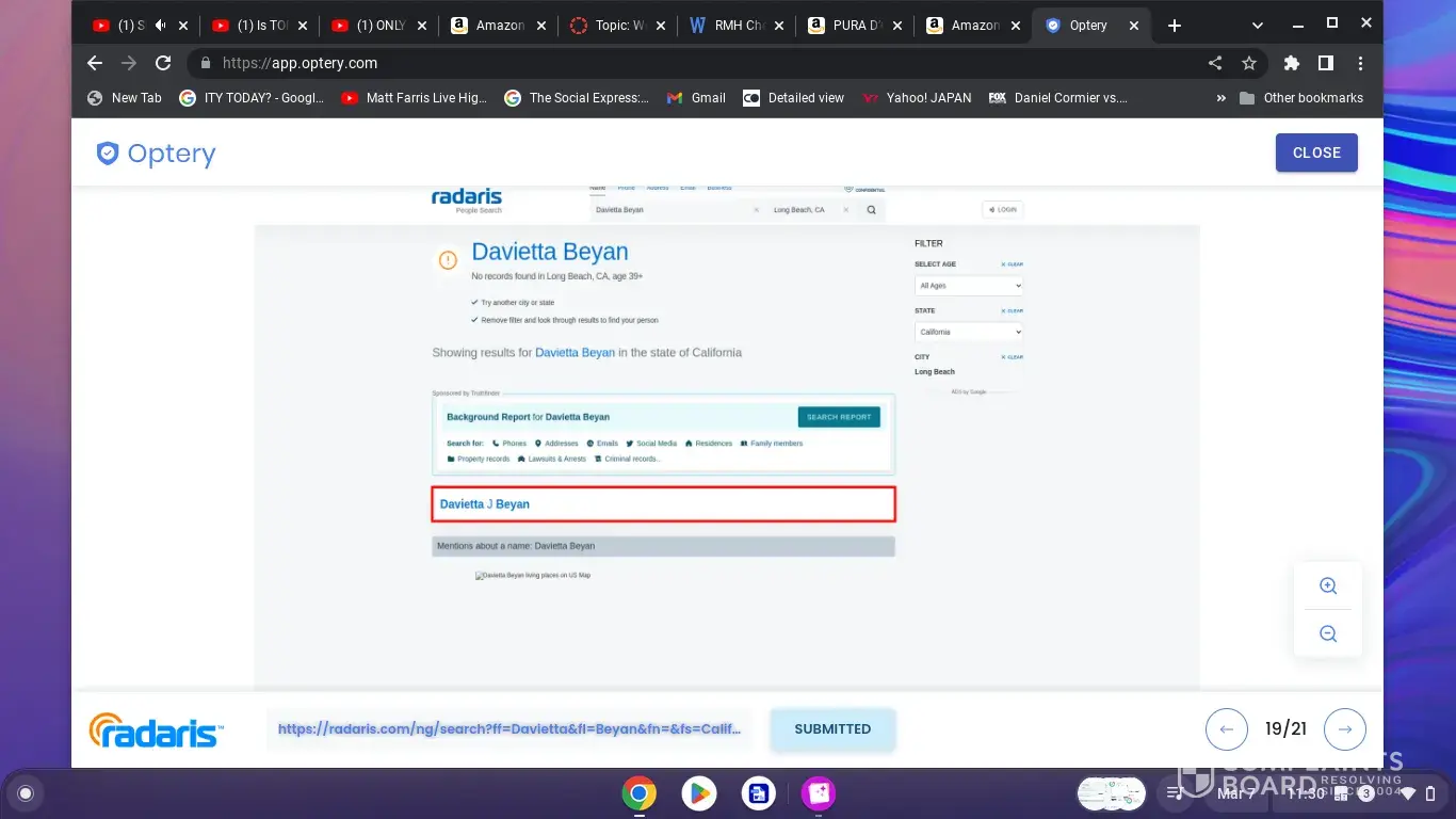 I HAVE OPTED OUT OF RADARIS TWO MONTHS AGO. This company has been stalking me and selling my info and adding false info as well,this company does not respect privacy laws and pretend they do .Their opt out form is just there for decorations. I am currently working with a data broker removal services .Additionally ,I will be filing a complaint with the FTC and exploring legal actions against this company.I opted out and instead of removing me ,they are linking me to a guy name Alfred beyan who I do not consider family so that it appears under his name but are using my name as their seo. I am tired of this company stalking me. I have proof of them selling my info from onerep,discover and optery.