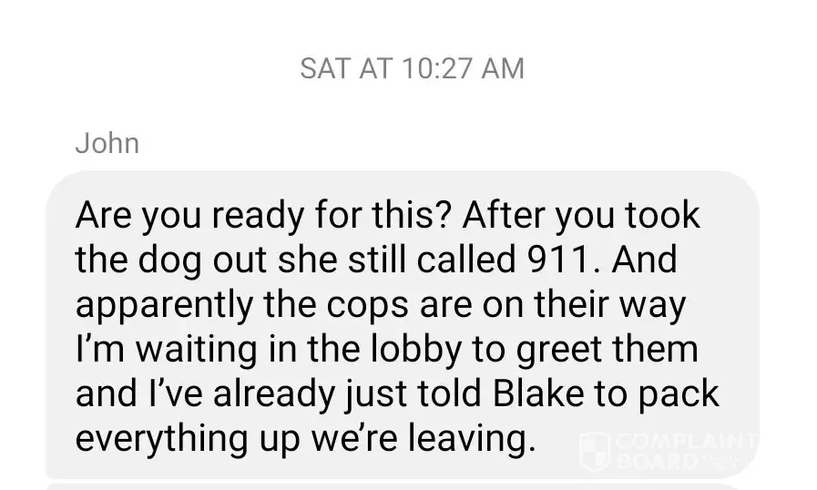 Got bags together and was walking through the lobby on the way out with dog when I observed Ami behind the front desk with phone in hand being very rude to one of my colleagues: "I told you what would happen if that dog wasn't removed!" Colleague pointed out I was walking to the door with dog and there was no need for such nasty attitude. Left immediately after that but have it on very good authority that she still called police about me and dog after I left.