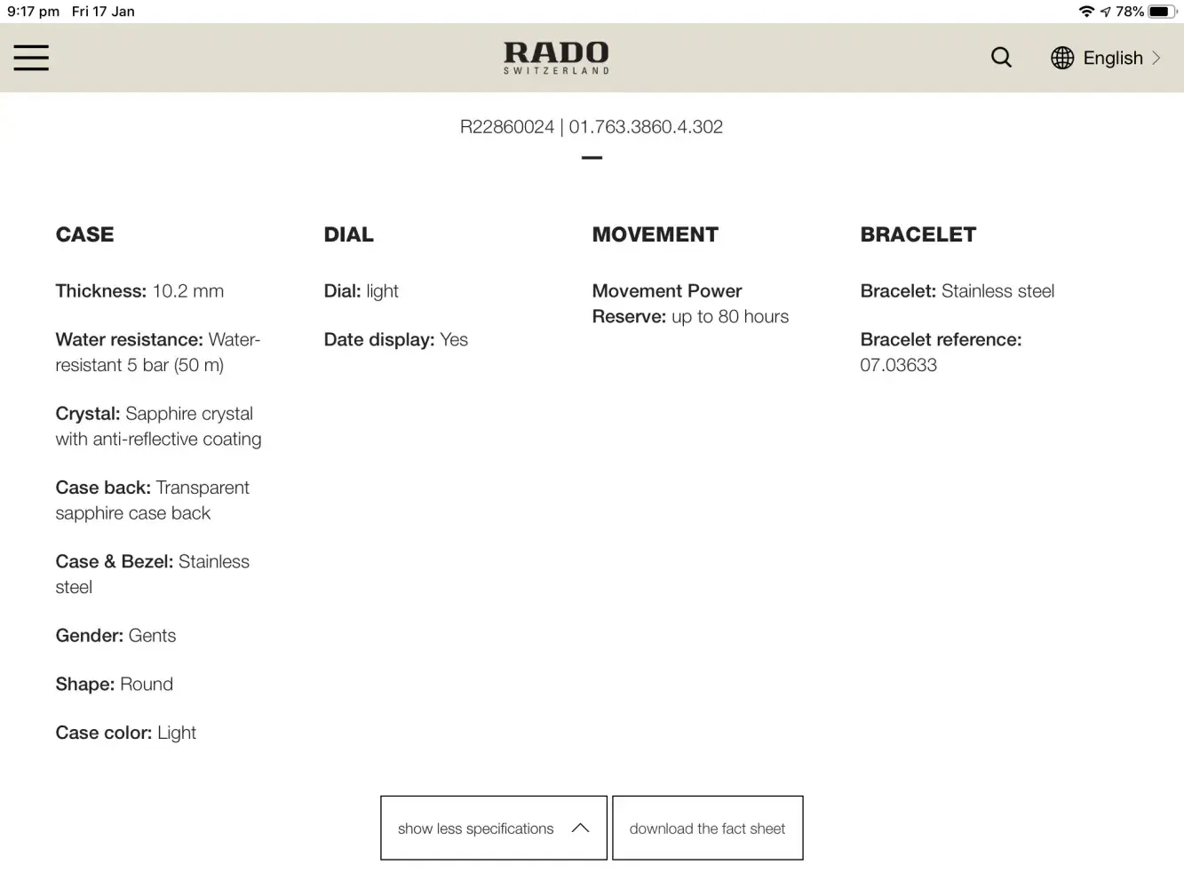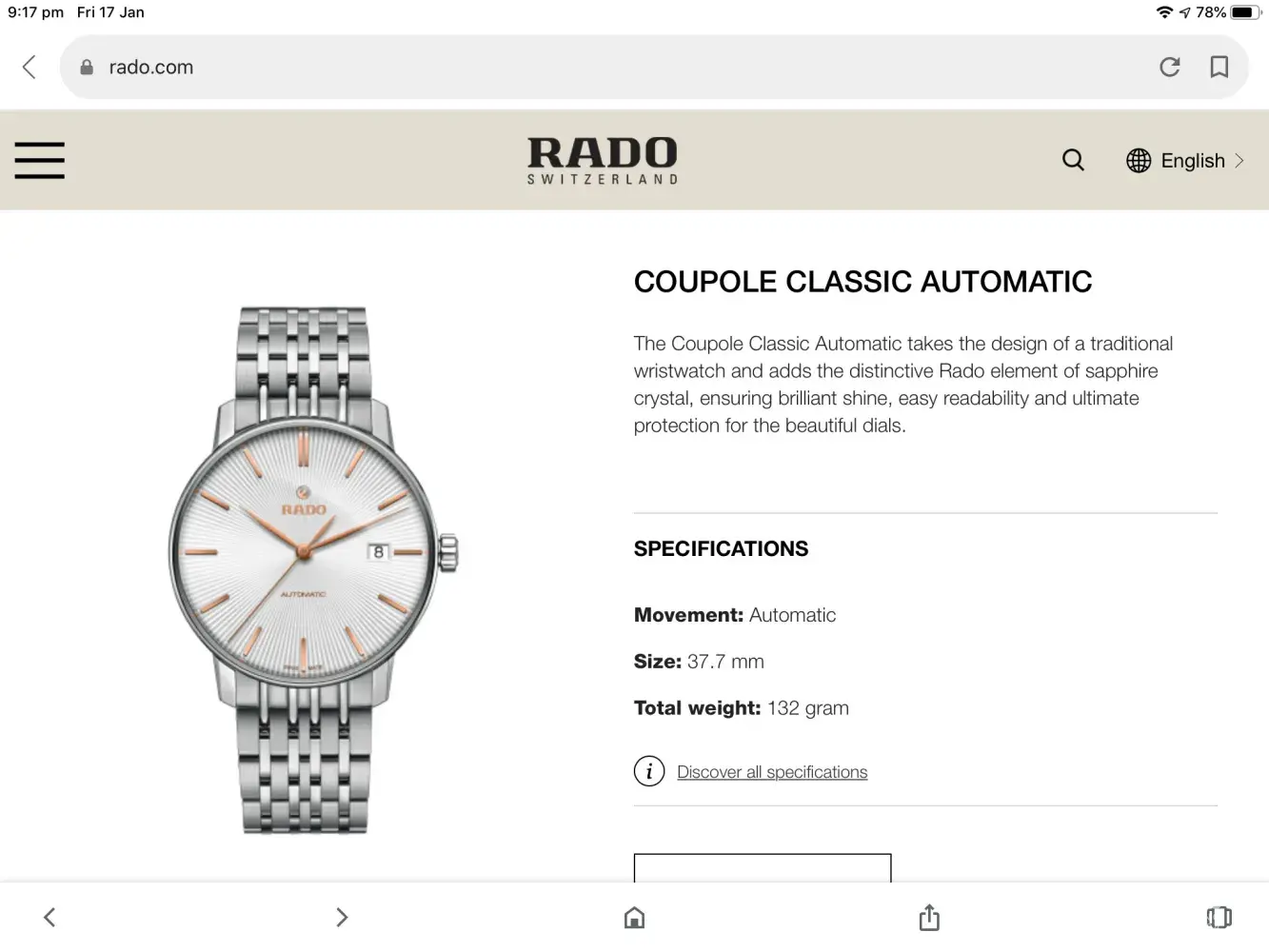 Thank you very much for your interest in Rado.