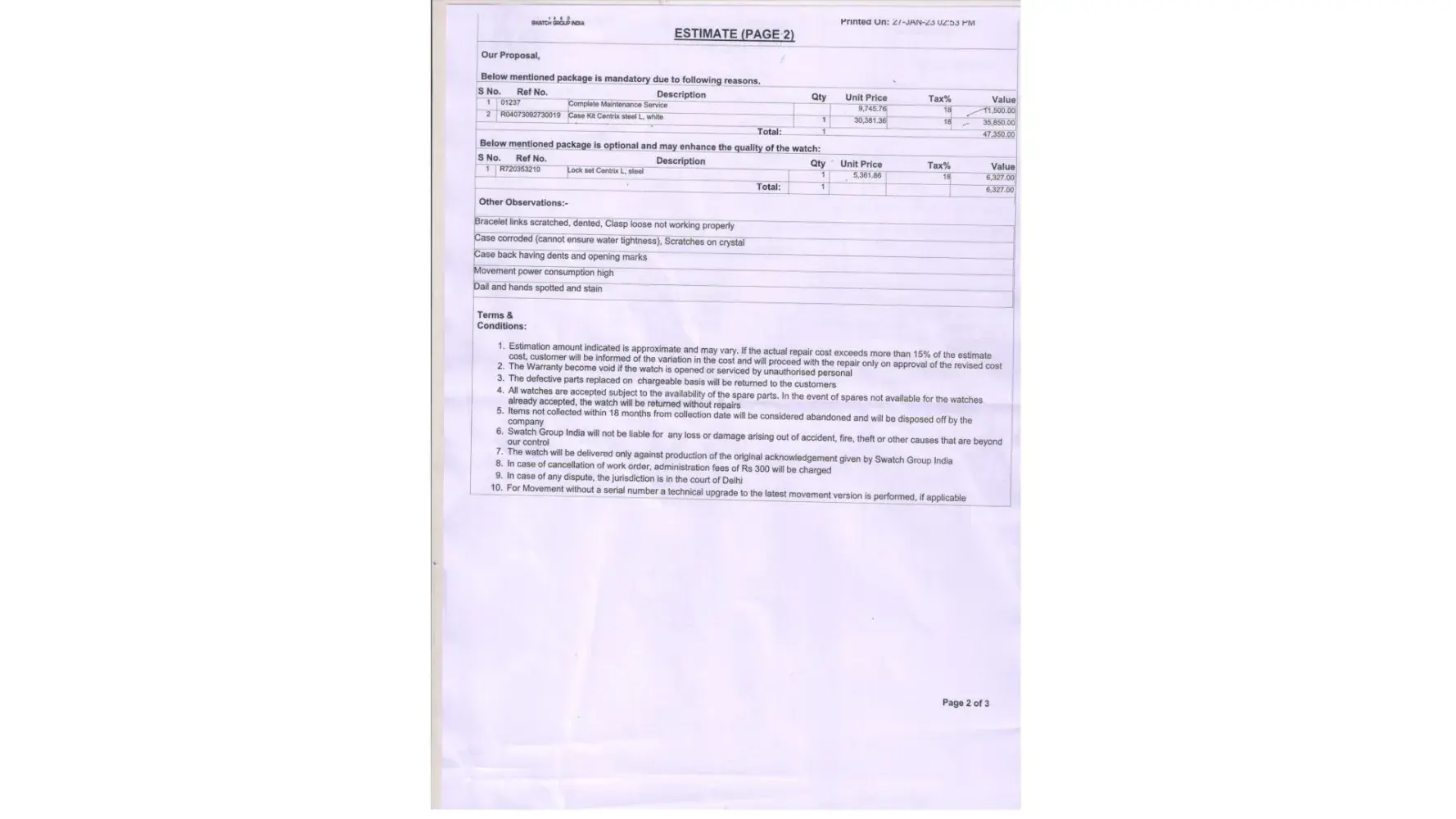 Please read the service terms and condition before buying RADO watch.
