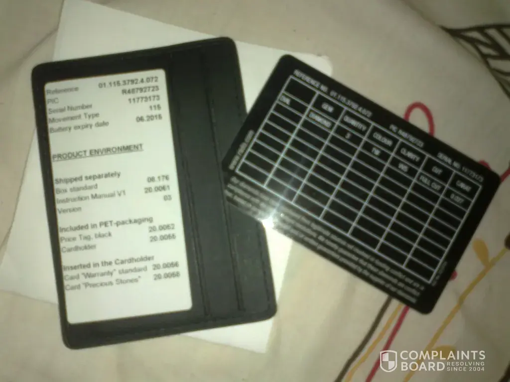 Attached are my papers for the watch, warranty and maintenance receipt.