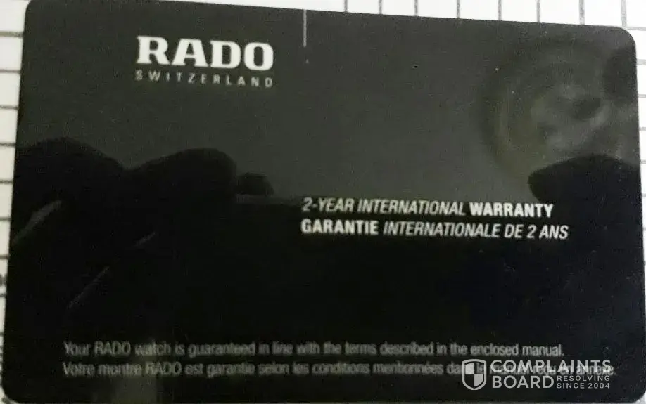 This is very disheartening to find that rado, is not able to keep it’s own warranty promise to their customers, and asking for unreasonable money for repairs.