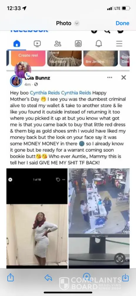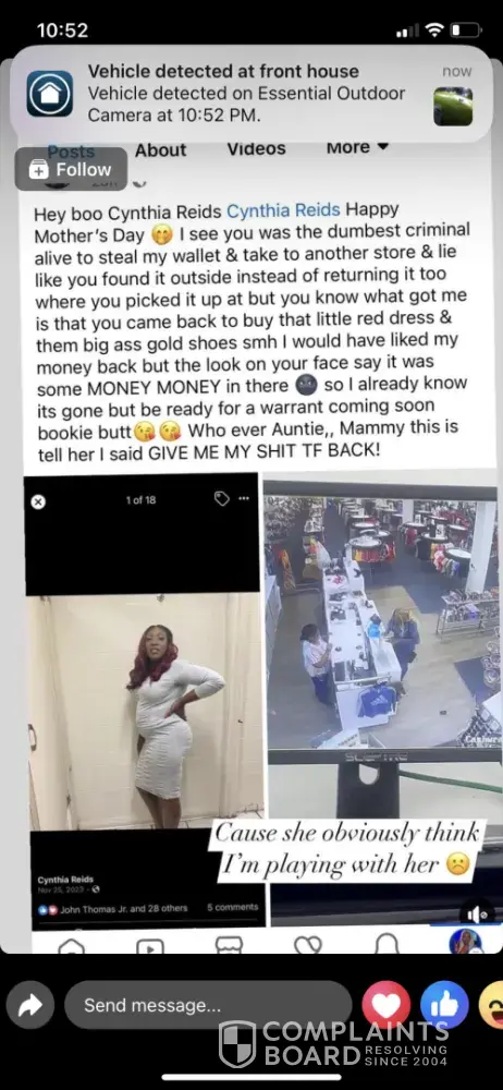 To whom it may concern It was a incident to happen in the store on Pensacola blvd here in Pensacola fl concerning a manger there by the name Shelia a black female she provided a customer a video of me off they surillance camera to another customer that had happened in the store mother day of this year and also the police got involved and the officer mills said she didn’t give Shelia the store manager permission to let the customer see the video of I Cythia Reid’s but she did I think it was a violation of my rights and she could got me killed by letting the other customer screenshot the surveillance camera in the store or letting looking at it once the police was involved and I can’t believe that manger still have her job and I complained to corporate about it and also the girl took the video and slandering my name and family on facebook what type of company allows a manager to do this to a customer