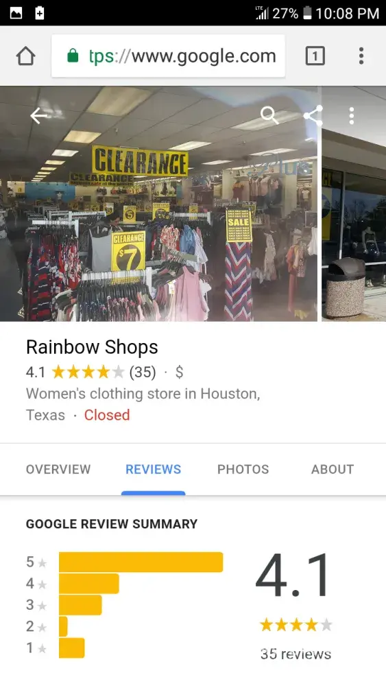I walked in rainbow at about 7:45 pm on 5/24/18. asked for help From something on the wall . Got attitude from the lady . As she was walking to get a stick she said damn clothes on the wall now ! I told her sorry for the inconvenience she said just not in a good mood .