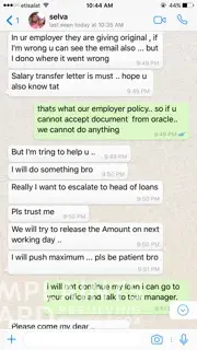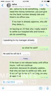 The reason why I applied for loan is for mother in law's treatment. The time that I needed the money, they cannot release it because of the document that is computer generated because I am working in SEHA and all our documents are computer generated (but with stamp and signature). So I have decided to cancel the loan because I cannot have the money when I am going home to Philippines. Then I was surprised that they released it when I came back from Philippines and I don't need the money anymore and was decided to cancel it. But they still released the money. So they are not listening to the client and just thinking about their job that they can get money from their client. There is no customer care. Hoping for your immediate action to these agent and the manager who handled my loan.