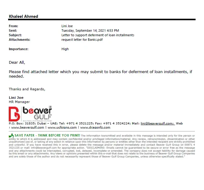 I had a loan from RAK Bank and lost my job due to Covid. Since I was unable to pay the loan Rakbank gave a case against me and I went to the police Station court and explained my predicament to the Judge who after understanding my situation ordered me to pay ADD 10, 000 which I paid with great difficulty.