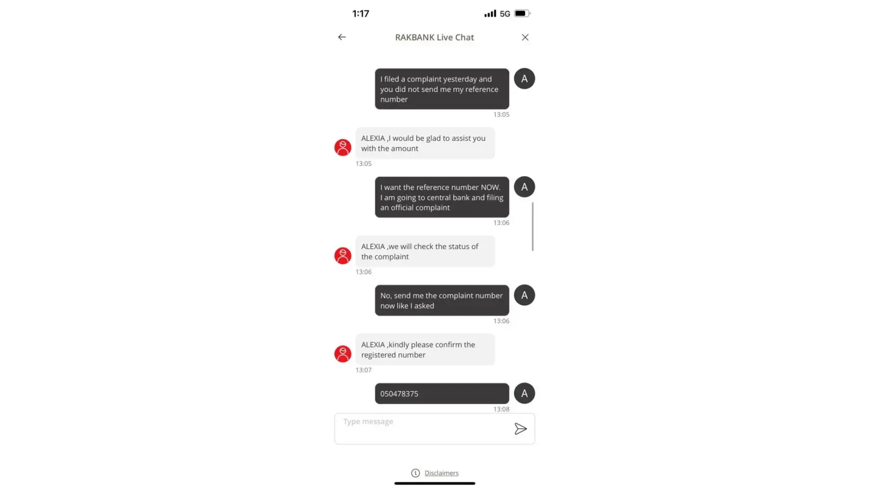 I have already lodged a complaint with RAK BANK SR5107899 but did not get any help.