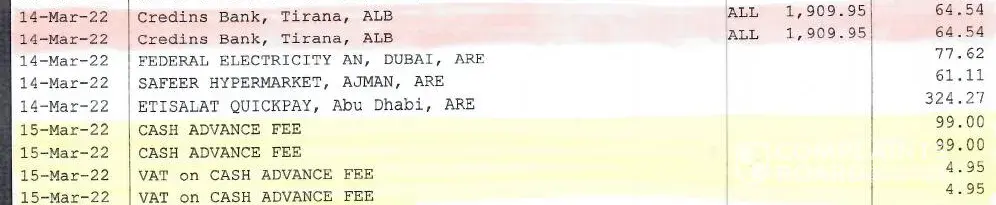 I have made Albania tourist visa fee payment of 1909.95 LEK through RAK Bank credit card on 14.03.2022 but RAK bank charged me Cash Advance fee 99 AED + VAT for 2 transactions (total 207.9 AED). I had previous experience of same type of deductions for making USD transactions through etoro by using RAK Bank credit card. I am regularly doing foreign currency transactions through my ENBD and FAB credit cards and the same I told to the tele- representative in the bank but she simply told "This is RAK Bank" and denied to lodge the complaints. This is not the right way to treat your customers. You may be RAK bank but you are not out of the legislations of Central Bank of UAE. After this experience, I will not make further transactions and get rid of this arrogant bank.