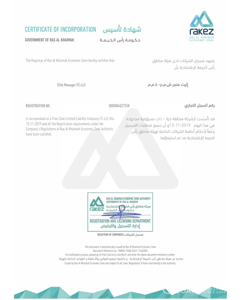 We are Andrea snd Bruno Marchesi, owners of Elite Manager FZ LLC, our company is opened in Rakez since 2019, from 5 months we are trying to open the bank account in your bank and nobody really care about us.