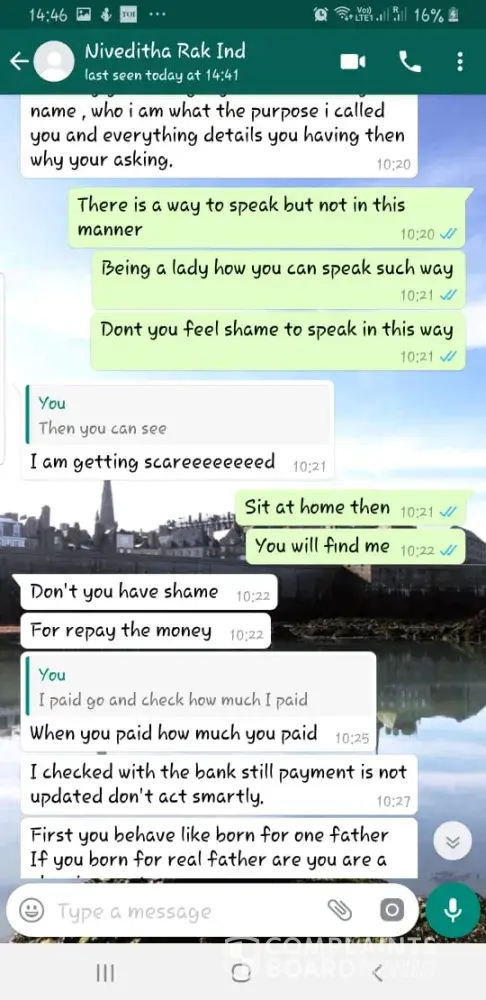Recently, the agency started calling me again and asking for more money. I didn't have a settlement letter and all the communication I had done with the bank was via WhatsApp and mobile. I fought with those people, and I stopped answering their calls.